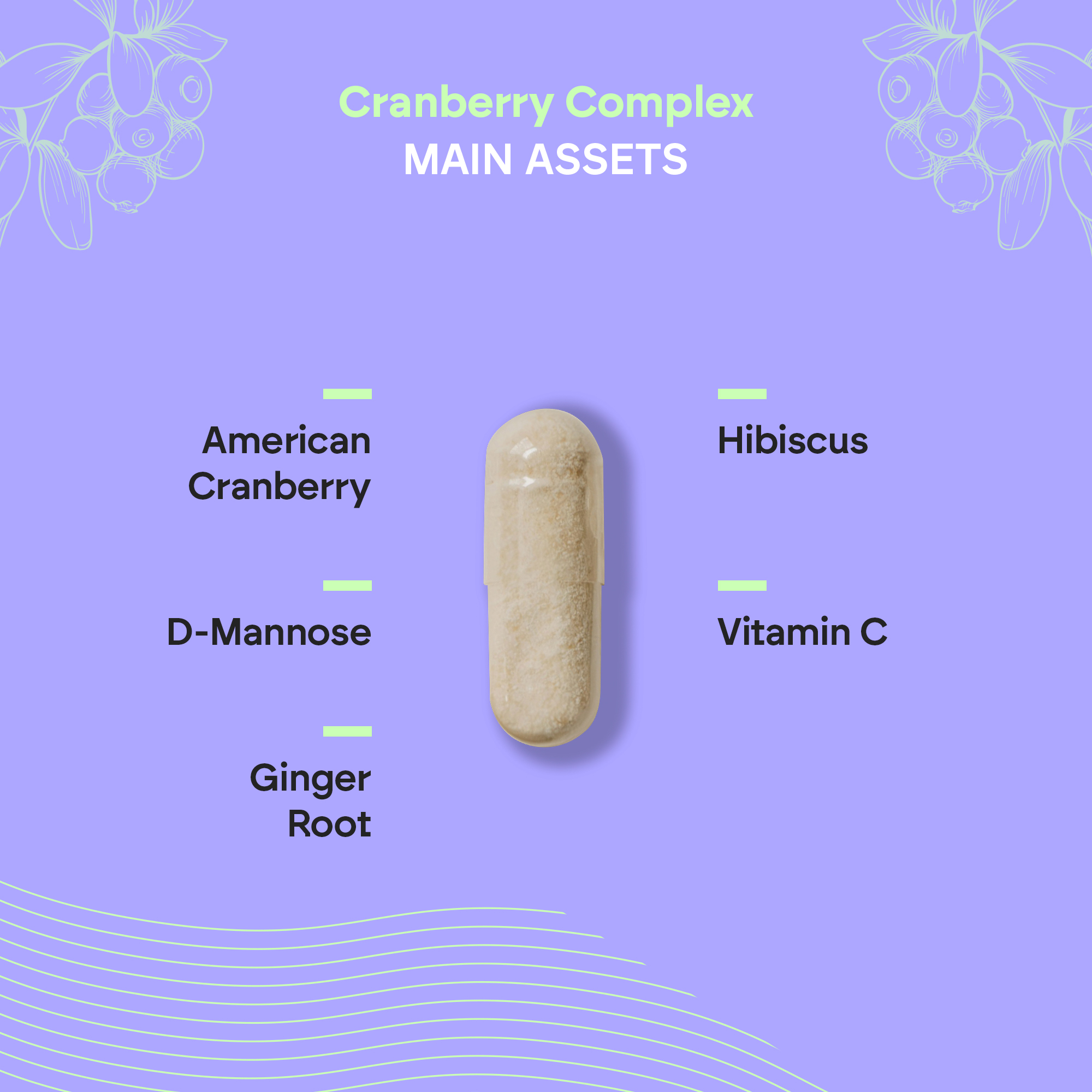 Our Cranberry Complex also contains 80 mg of vitamin C, 400 mg of D-mannose, and 100 mg of hibiscus.