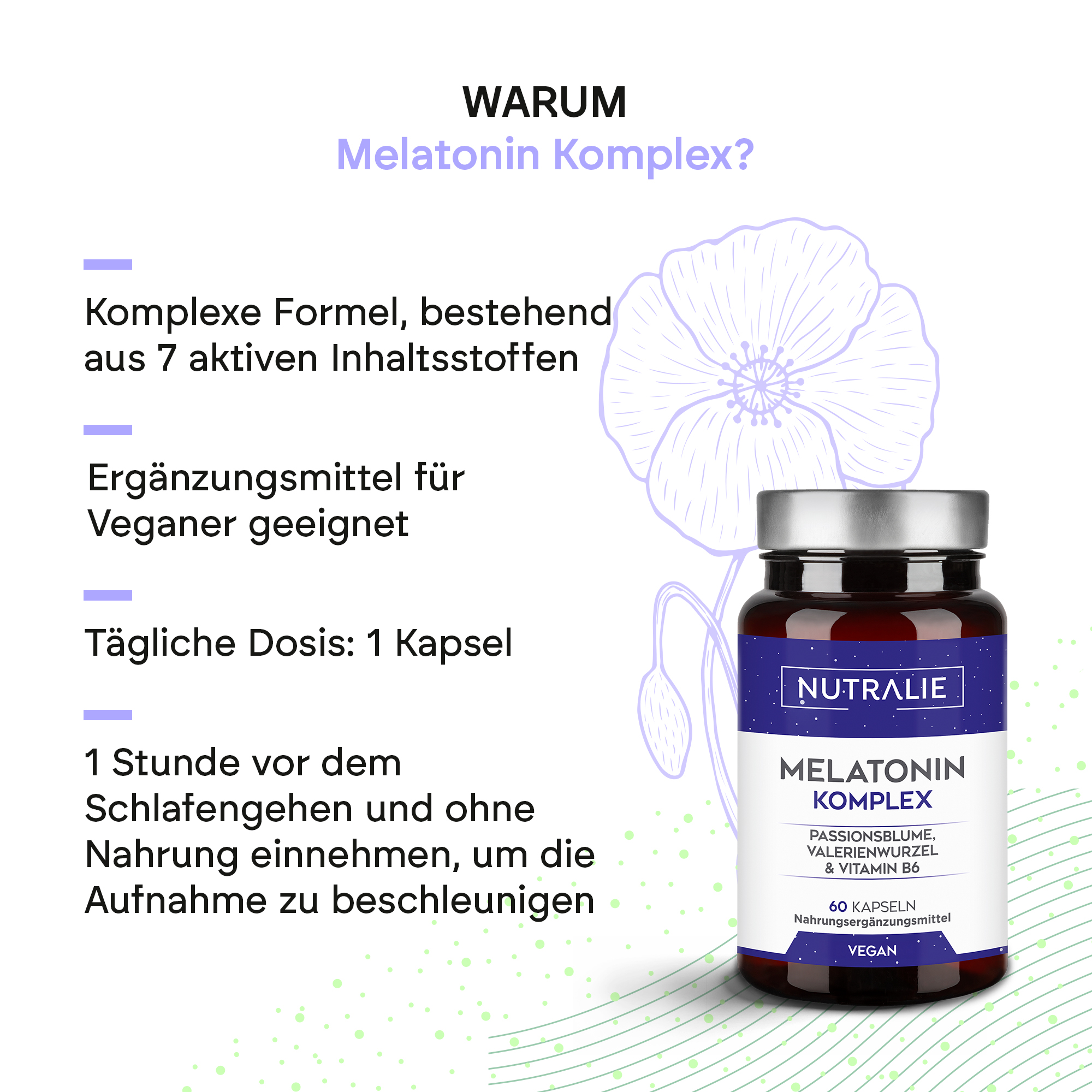 Der Nutralie Melatonin-Komplex trägt dank Melatonin dazu bei, die Einschlafzeit zu verkürzen.*