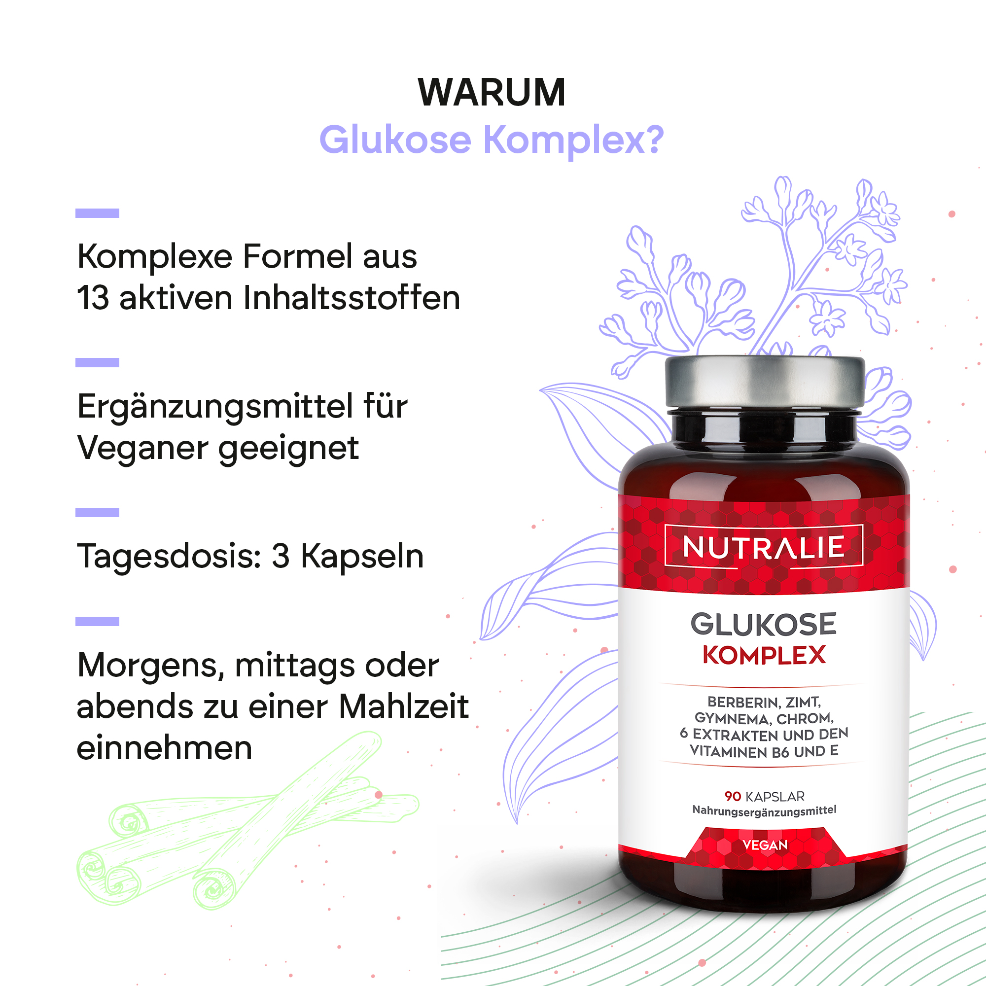 Der Glukosekomplex von Nutralie trägt dank des enthaltenen Chroms zur Aufrechterhaltung eines normalen Blutzuckerspiegels bei.
