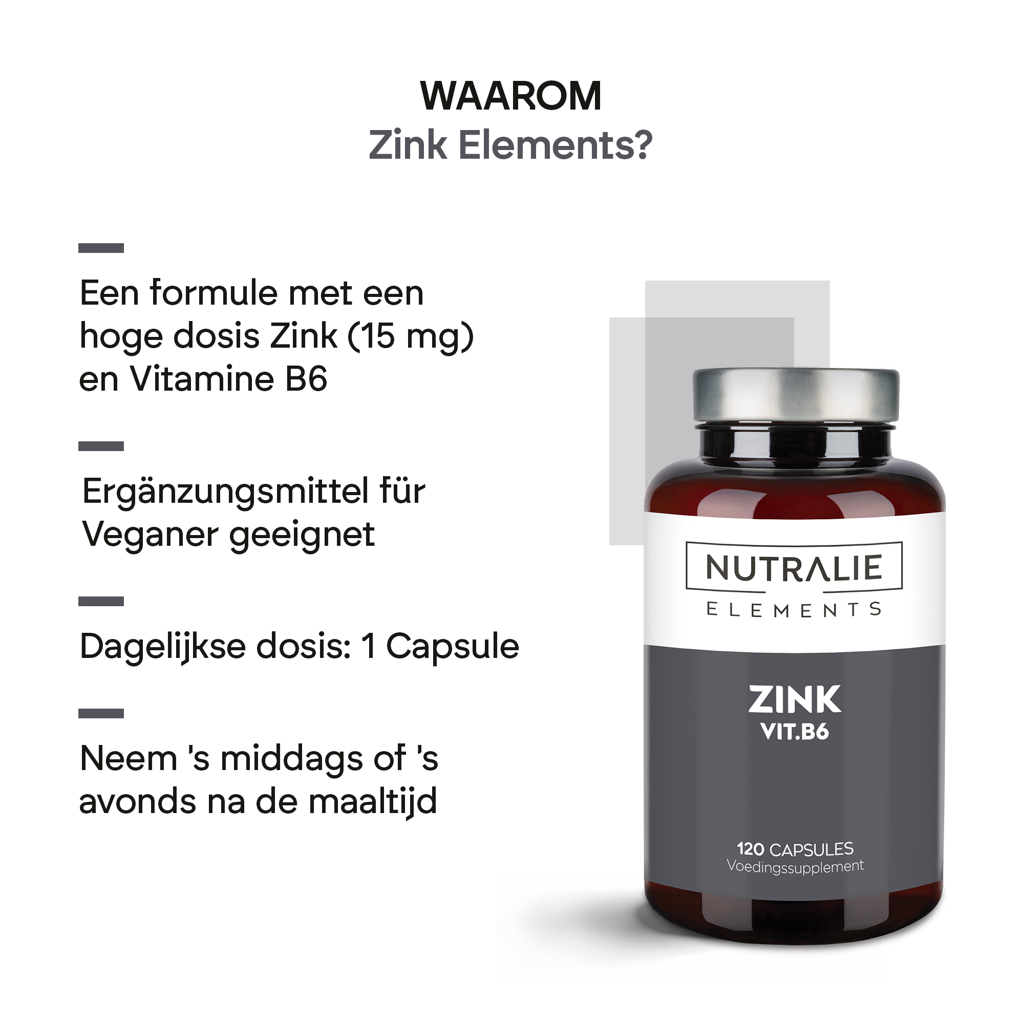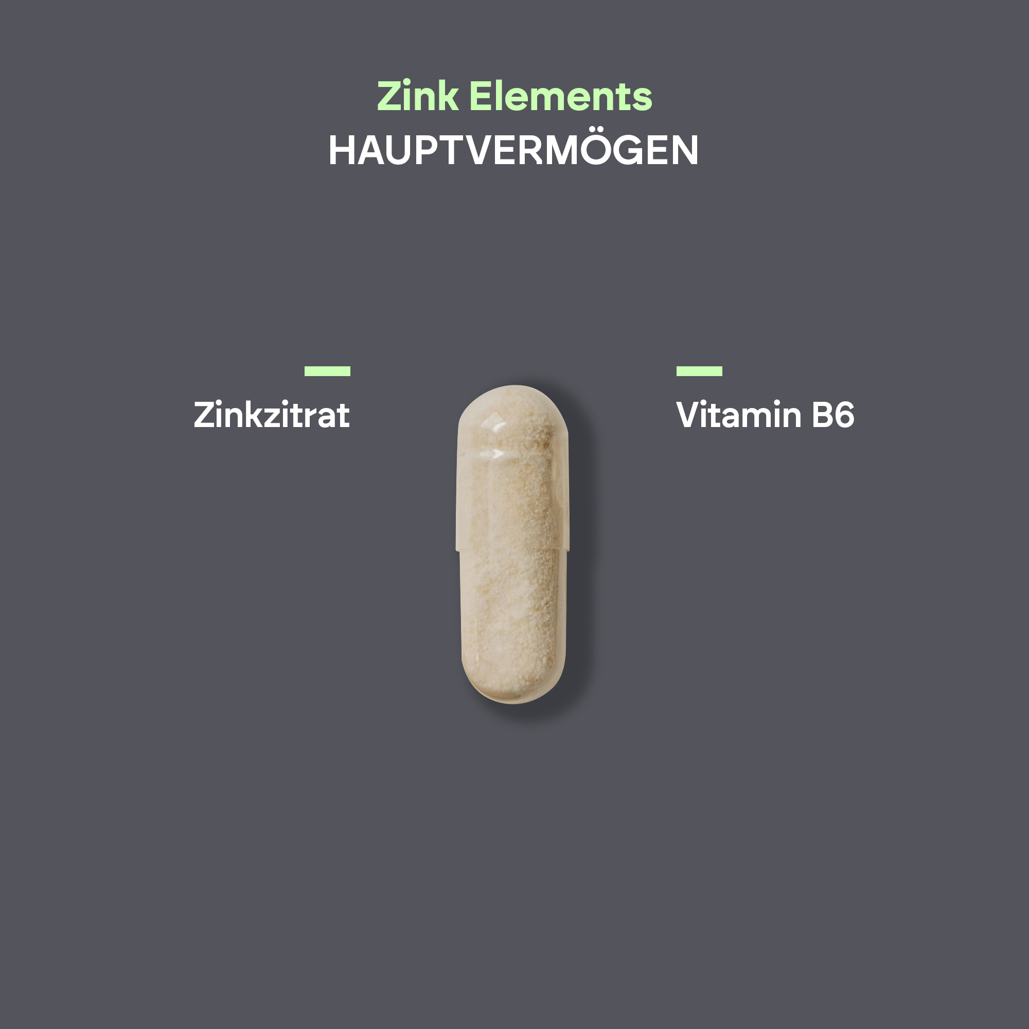 Zinc Elements enthält eine hohe Dosis Zink, das zum normalen Stoffwechsel von Makronährstoffen und Fettsäuren beiträgt.