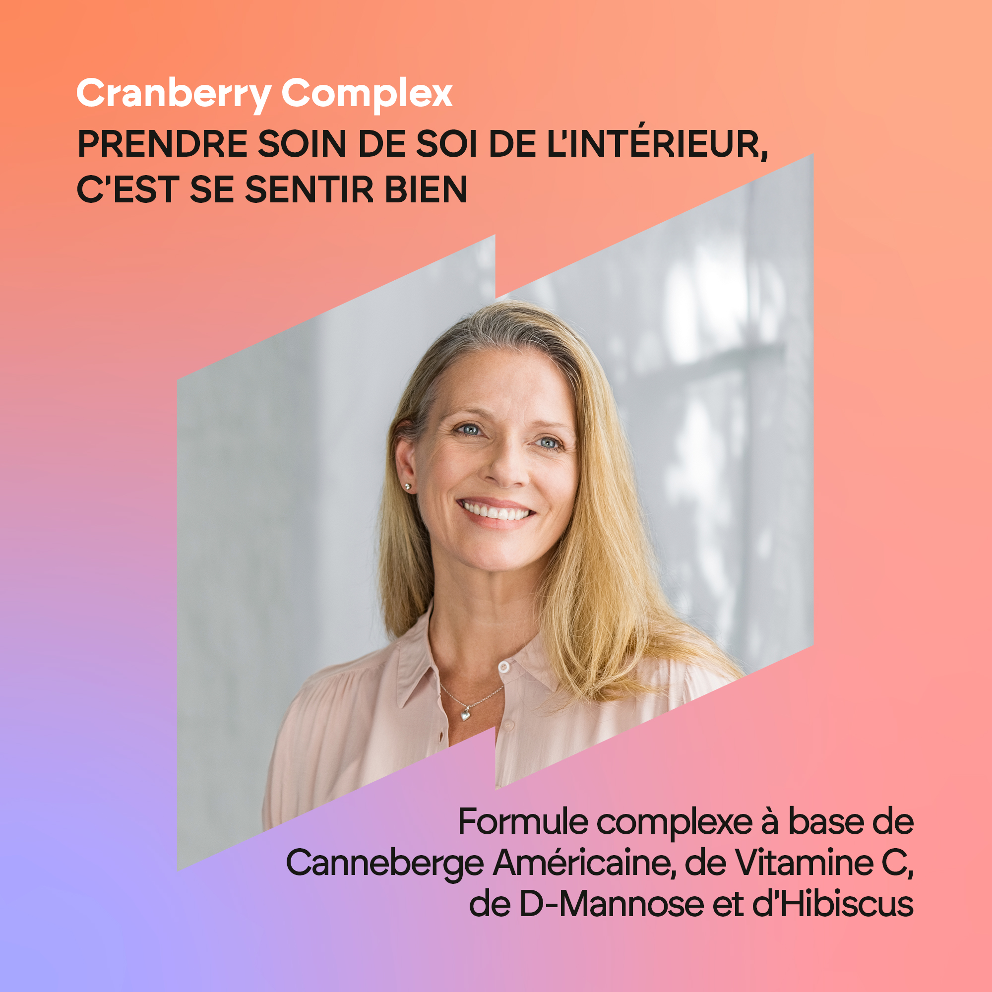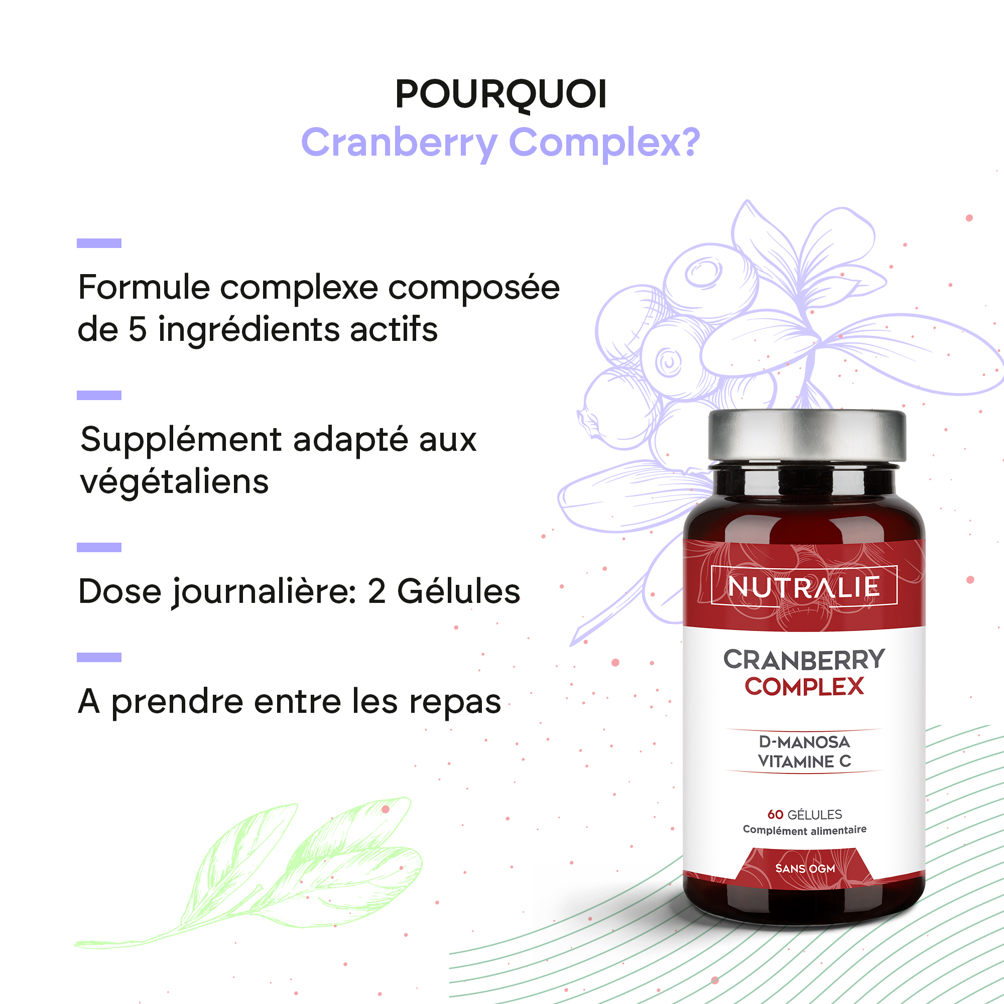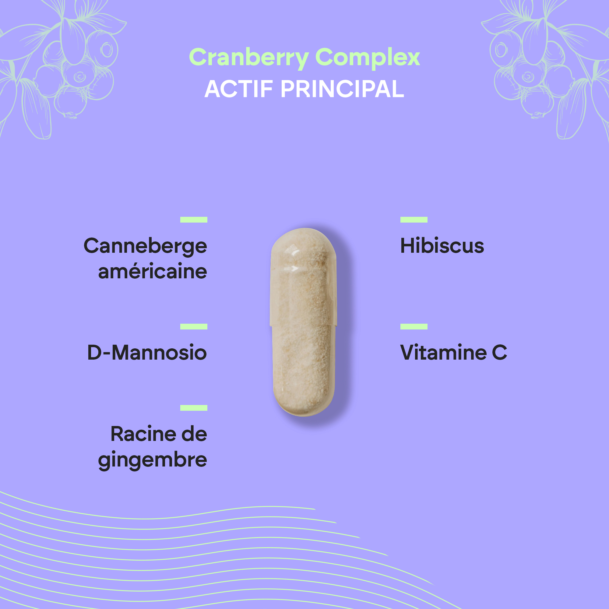 Notre Complexe Canneberge contient également 80 mg de vitamine C, 400 mg de D-mannose et 100 mg d’hibiscus.