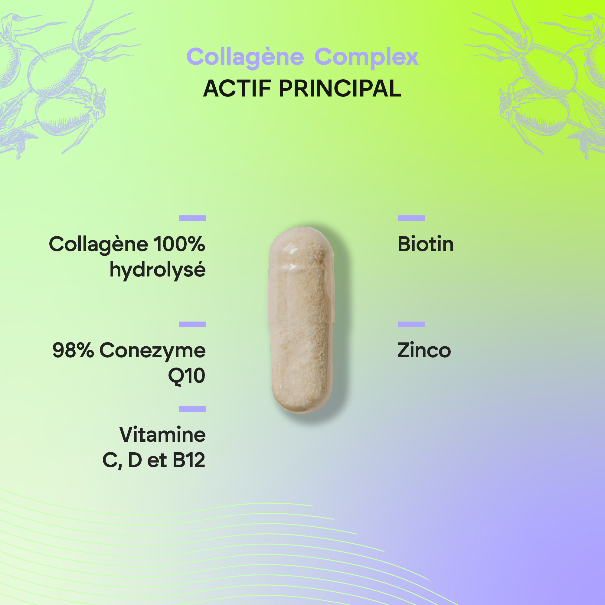 Le Complexe Collagène* est présenté dans un emballage de 60 capsules.