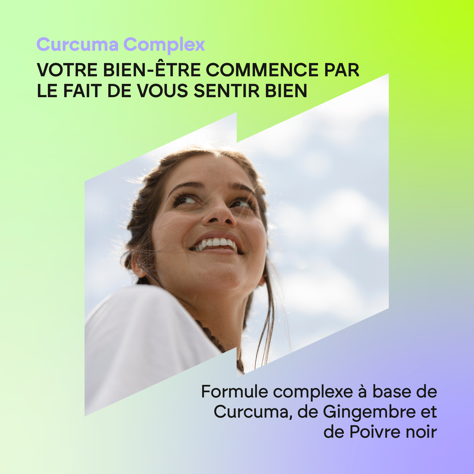 Le complément alimentaire Complexe de Curcuma de Nutralie contient trois ingrédients naturels et biologiques : le curcuma, le gingembre et le poivre noir.