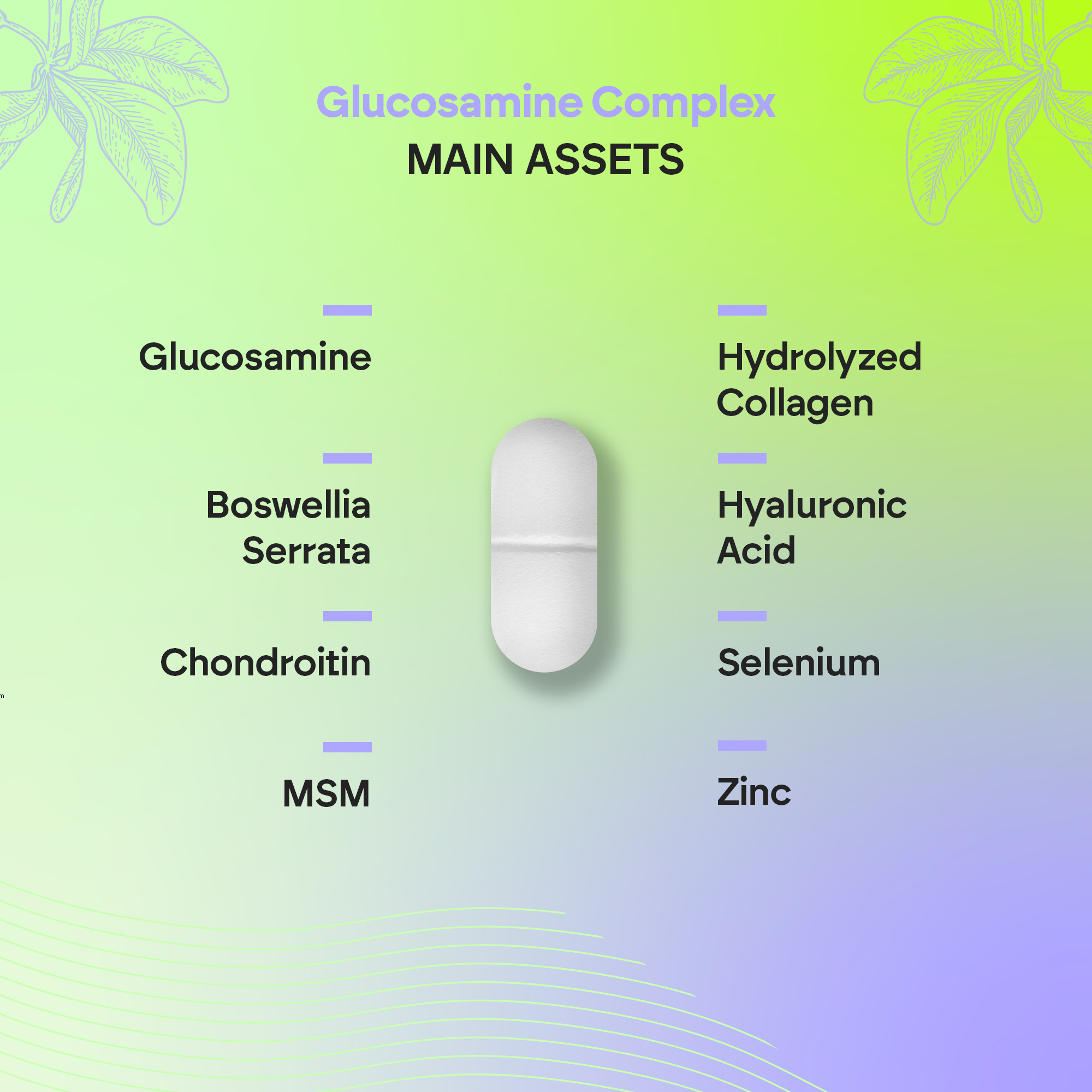 Nutralie Glucosamine Complex contains glucosamine and chondroitin, two ingredients found in cartilage. This formula also includes MSM (methylsulfonylmethane), boswellic acids, collagen, hyaluronic acid, selenium, and zinc.
