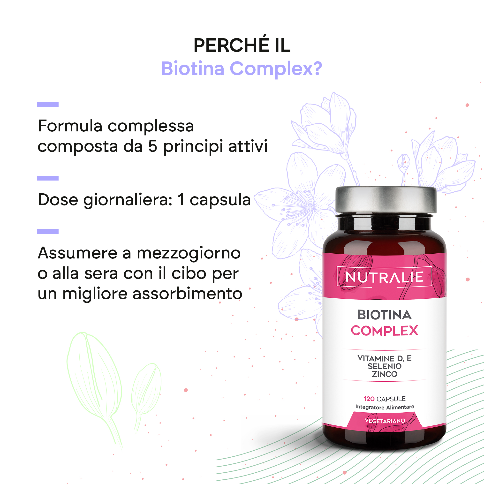 Biotin Complex di Nutralie è disponibile in confezioni da 120 capsule.