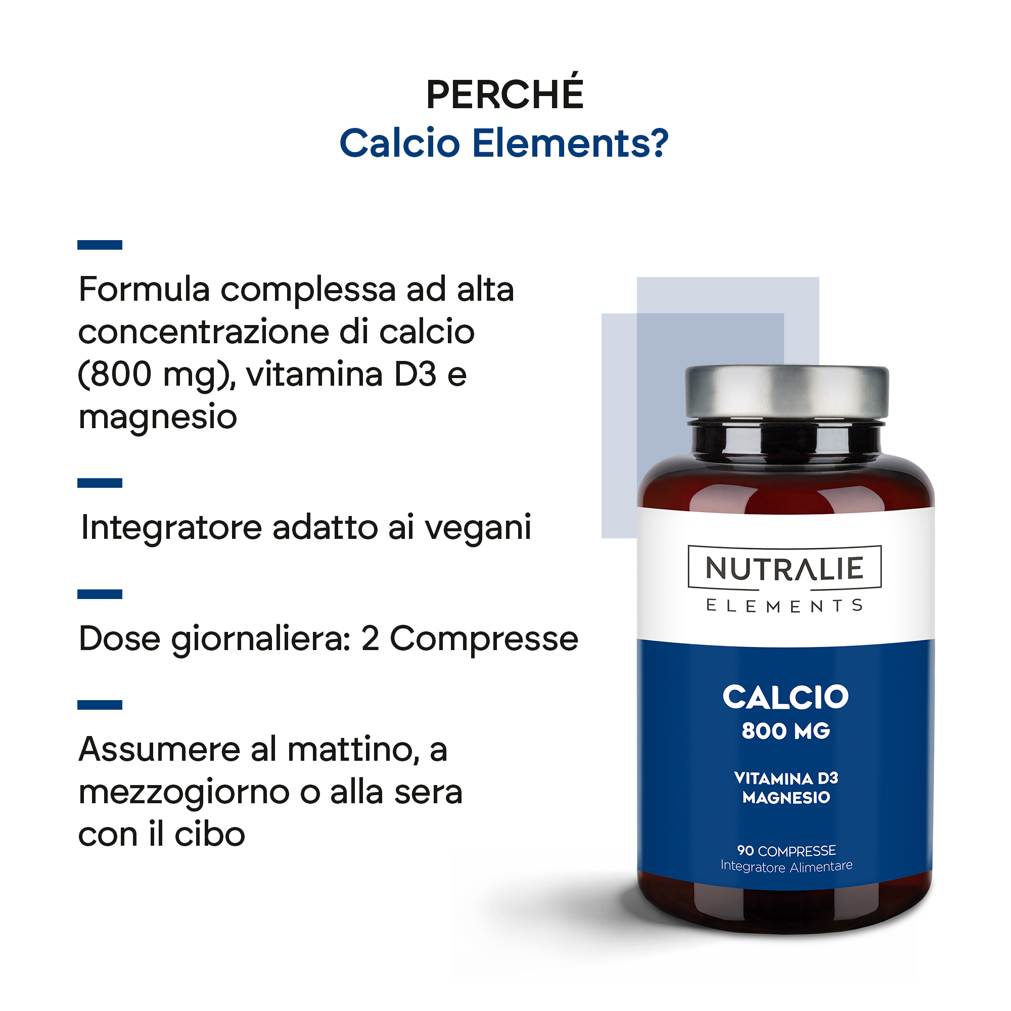 Nutralie Calcium Elements è disponibile in una confezione da 90 compresse.
