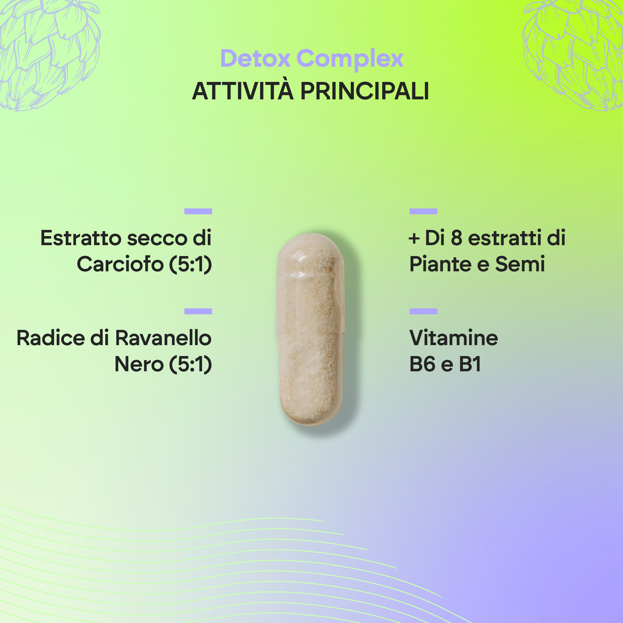 Il nostro integratore Detox Complex è composto da diverse piante e semi, tra cui carciofo e ravanello nero. Questa formula naturale contiene anche colina e vitamine B1 (tiamina) e B6, quest’ultima responsabile del normale metabolismo energetico.