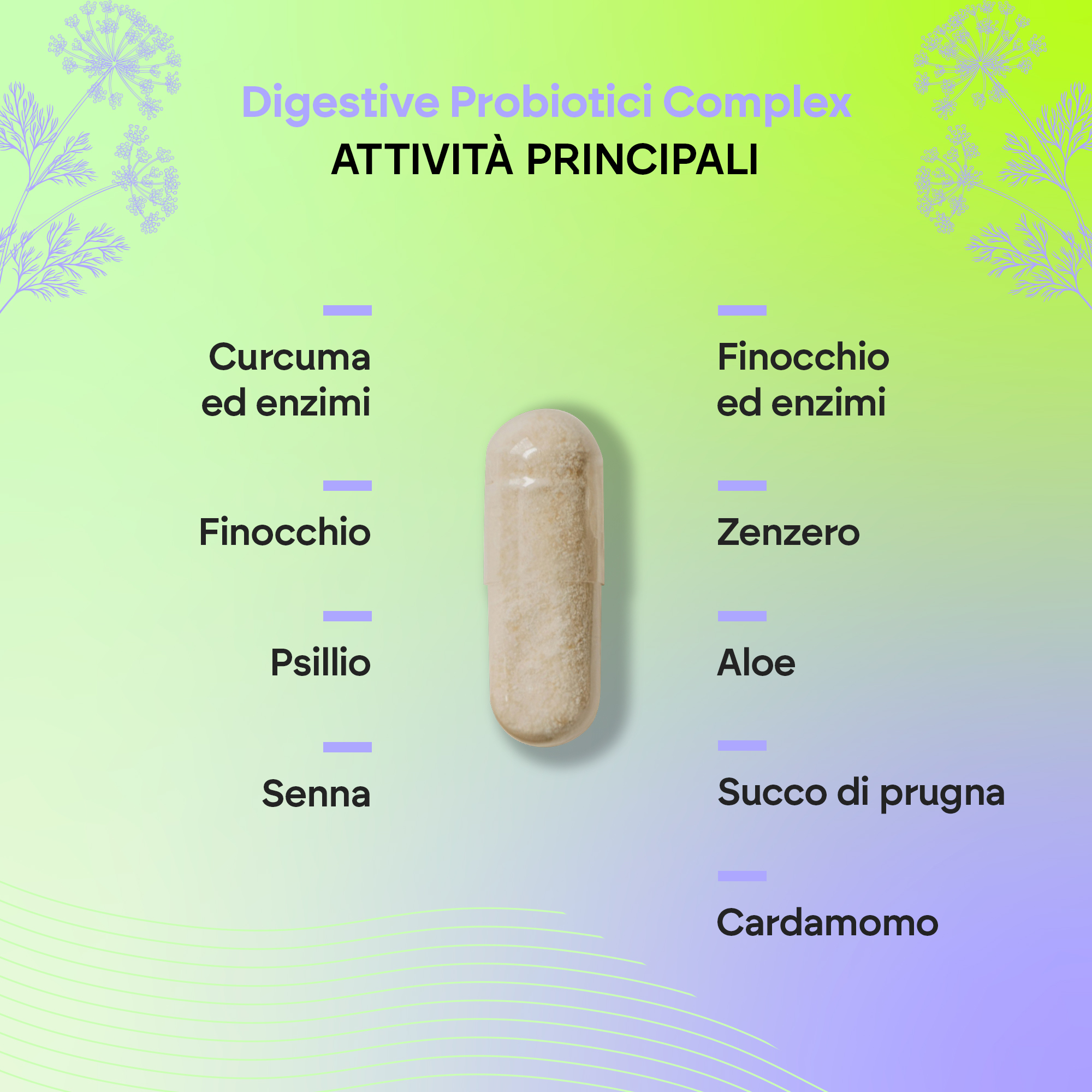 Il complesso Digestive* Biprotics di Nutralie è sviluppato con ceppi batterici ed enzimi, e altri ingredienti come curcuma, finocchio, psillio, senna, olivello spinoso, zenzero, aloe vera, succo di prugna e cardamomo.