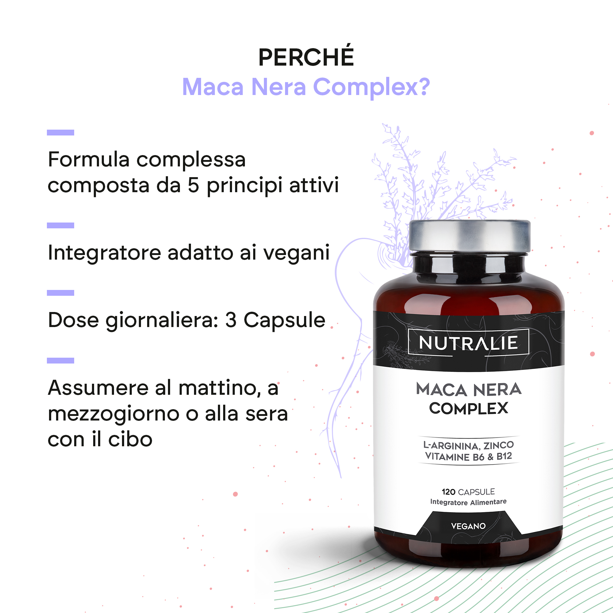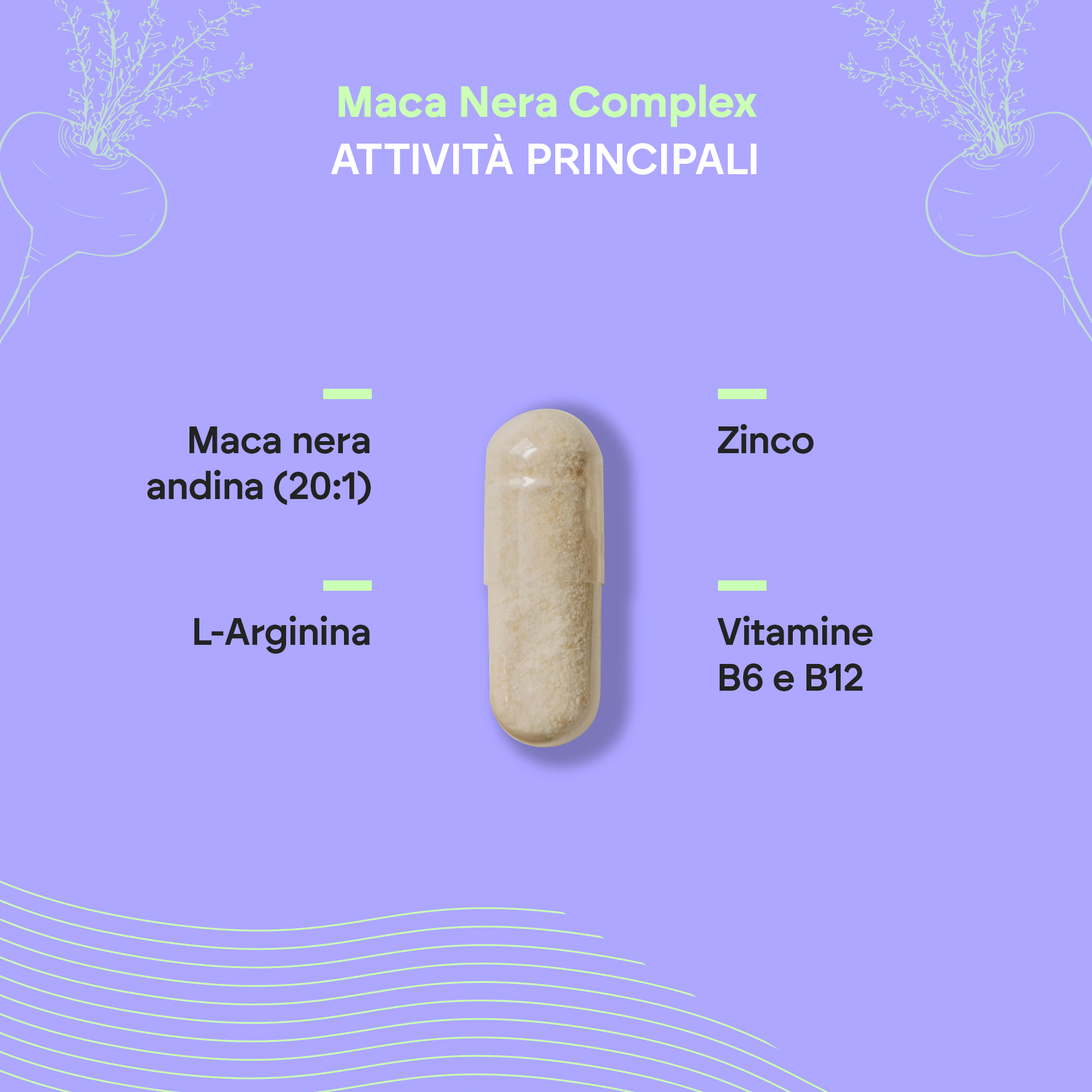 Black Maca Complex è disponibile in confezioni da 120 capsule.