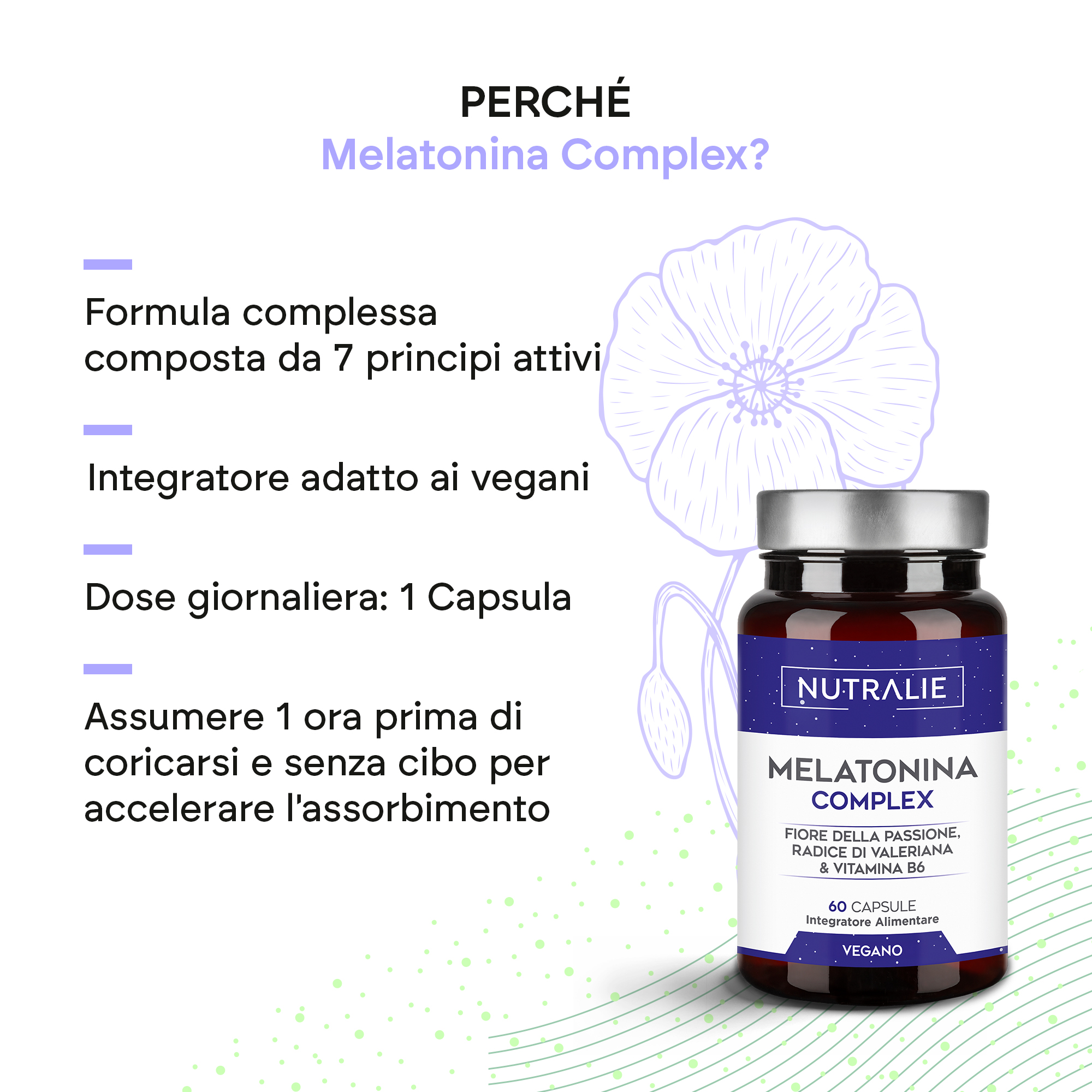 Il Melatonin Complex di Nutralie, grazie alla melatonina, aiuta a ridurre il tempo necessario per addormentarsi.*
