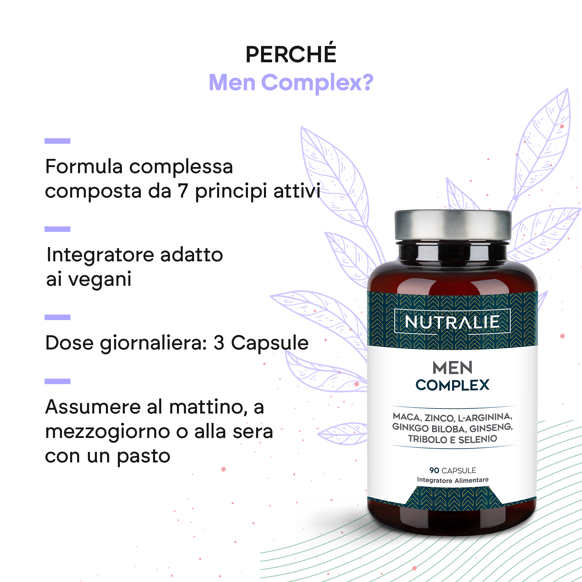 Nutralie Men Complex, grazie allo Zinco, contribuisce al mantenimento di normali livelli di testosterone. Lo Zinco contribuisce anche alla normale fertilità e riproduzione.