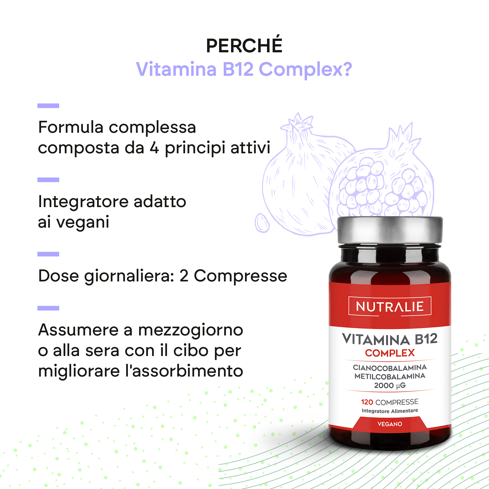 Il complesso vitaminico B12 di Nutralie contiene vitamina B12 e vitamina B6, che contribuiscono alla normale formazione dei globuli rossi.