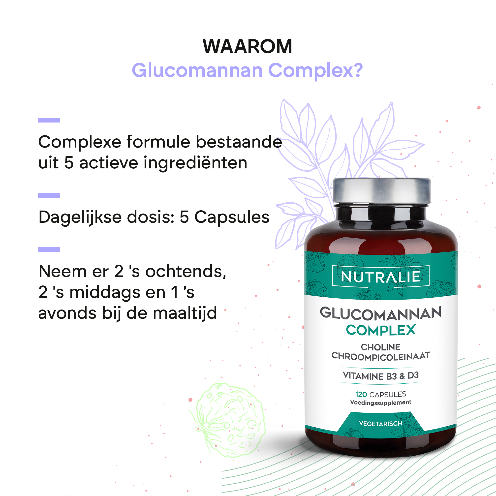 Nutralie's Glucomannan Complex helpt, dankzij de glucomannan in de formule, bij gewichtsverlies tijdens een caloriearm dieet.*