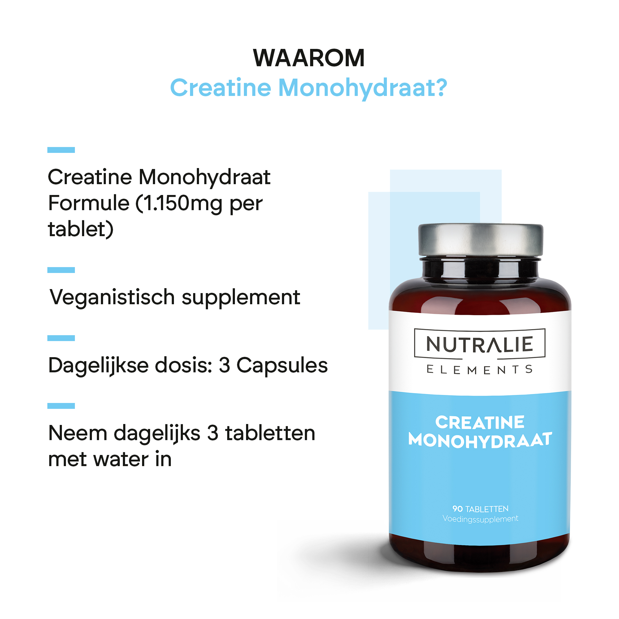 Creatine Monohydraat Elementen van Nutralie presenteren zich in een capsule die 90 capsules bevat.