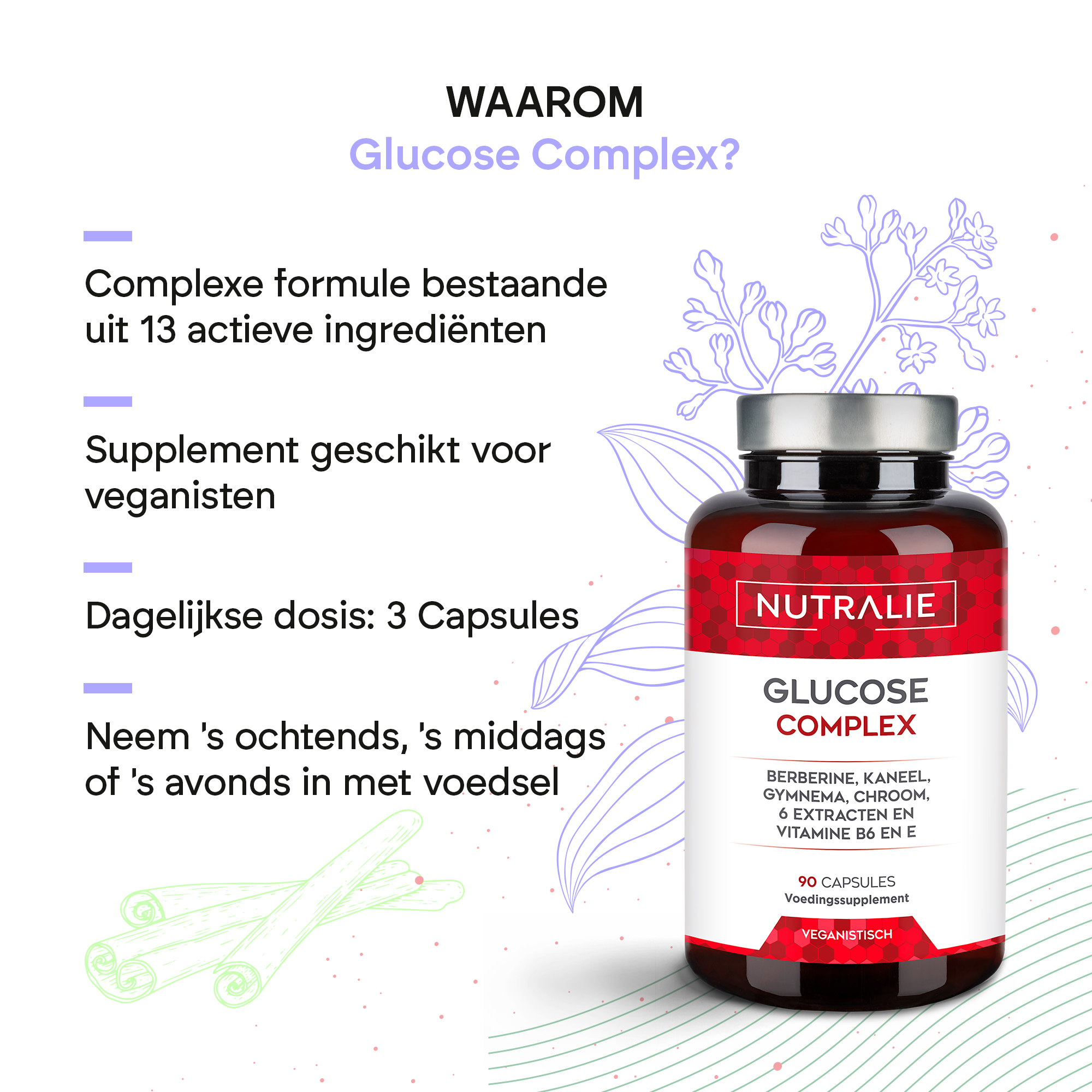 Nutralie's Glucose Complex helpt, dankzij het chroom in de formule, een normale bloedglucosespiegel te behouden.