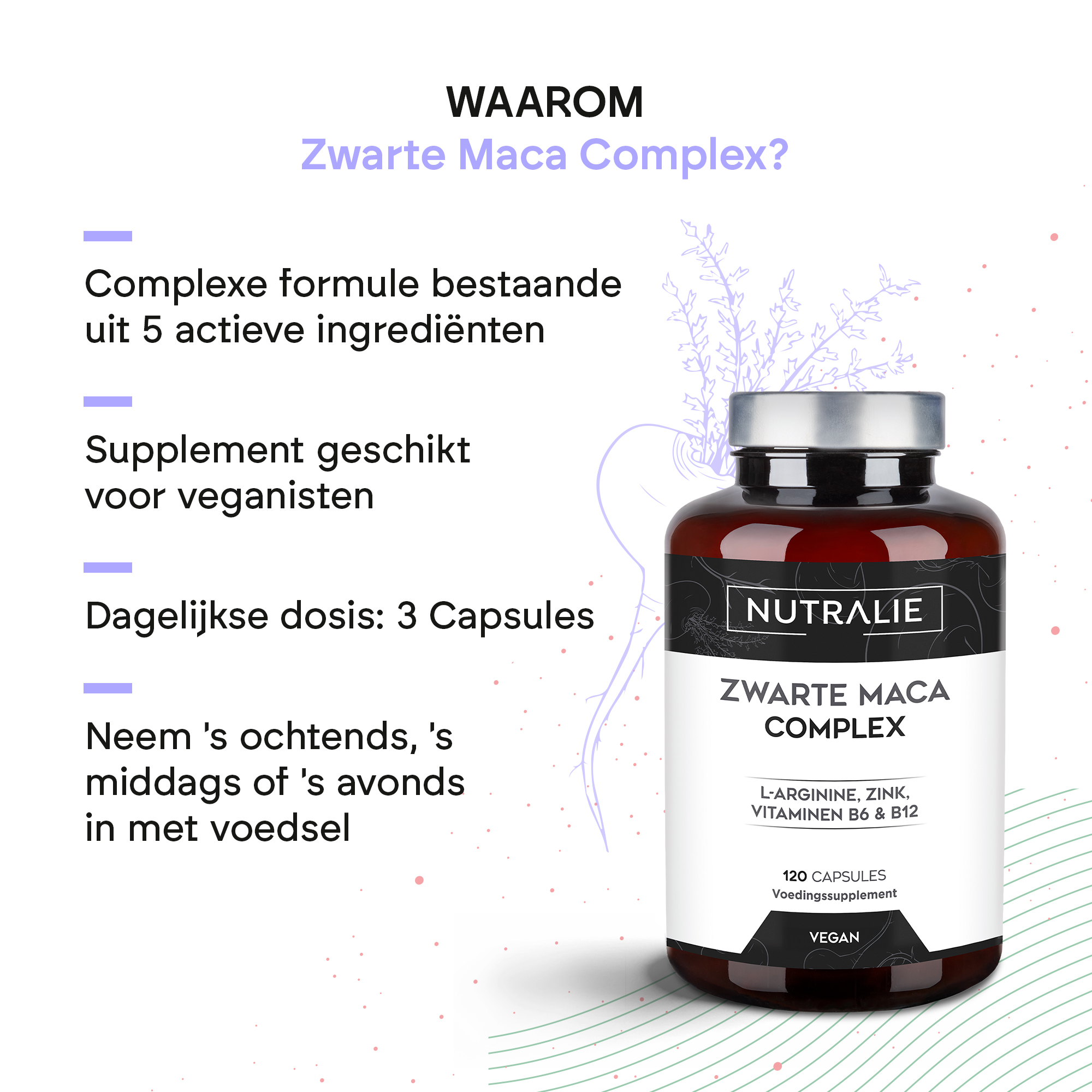 Black Maca Complex wordt geleverd in een verpakking met 120 capsules.