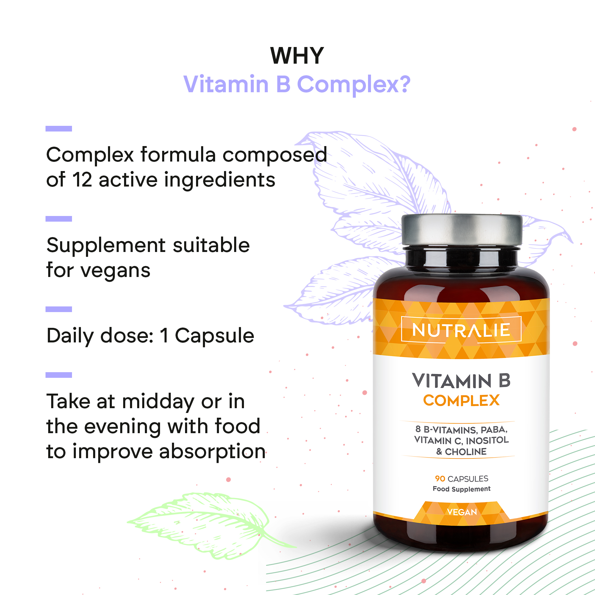 Nutralie Vitamin B Complex contains vitamins B6, B12 and C, which help reduce tiredness and fatigue.